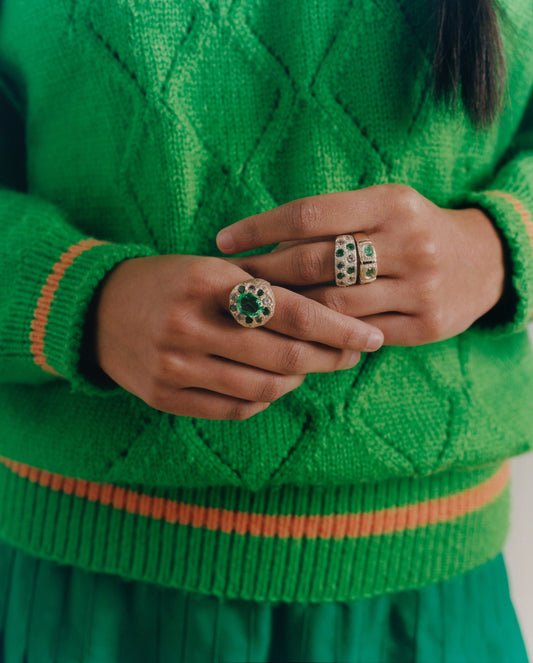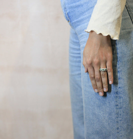 Window Box Ring - Green - Silver