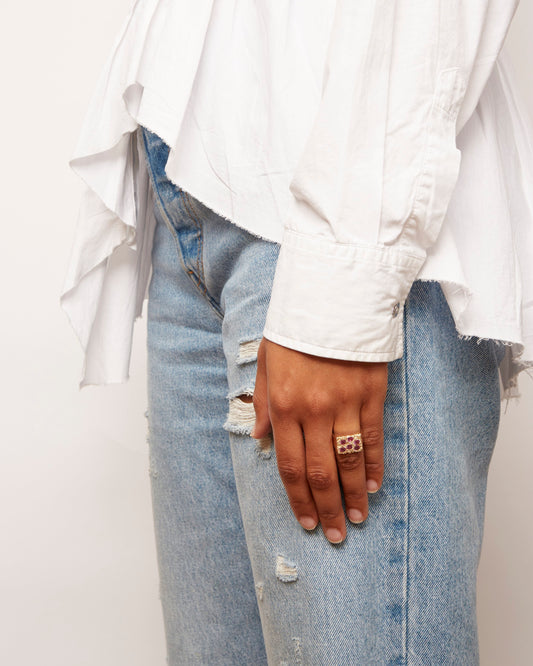 The Mini Rose Garden Signet - Pink - Gold