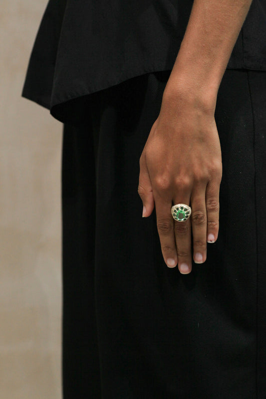 Window Box Ring - Green - Gold